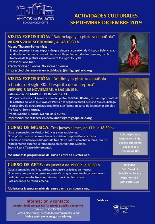 Nuestros socios de la Asociación Amigos del Palacio de Boadilla del Monte presentan los programas de nuestras próximas actividades culturales:
