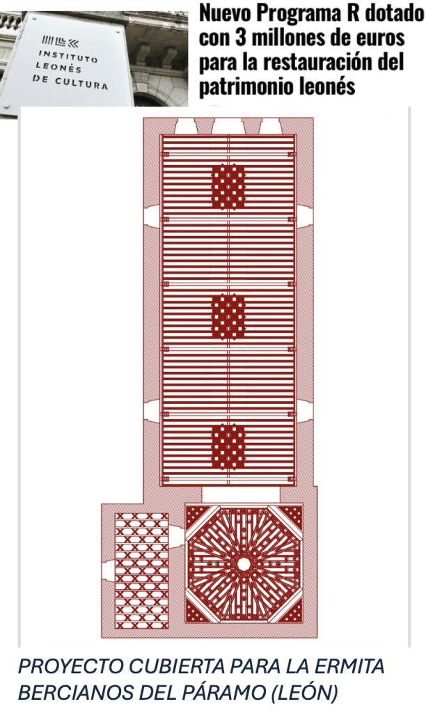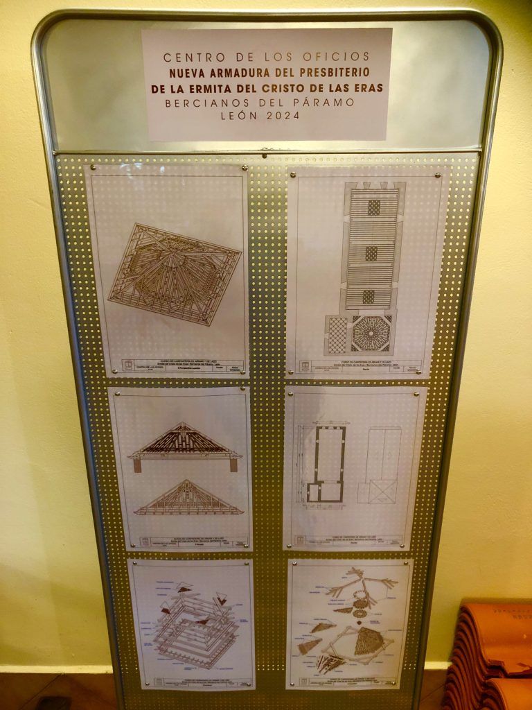 Ya disponemos de un panel informativo en el interior de nuestra ermita, con los planos explicativos del proyecto puesto en marcha, en el cual se pueden contemplar los croquis realizados por los maestros carpinteros de la Escuela de Artes y Oficios de León (Centro de los Oficios en Puente Castro), donde podremos observar de primera mano la dimensión del proyecto para poner en valor la ermita de Bercianos del Páramo, y consolidar de esta forma una parte muy importante de nuestro patrimonio cultural, que junto a la iglesia parroquial, conforman un conjunto digno de admirar.