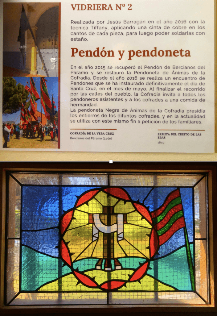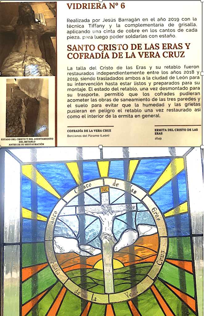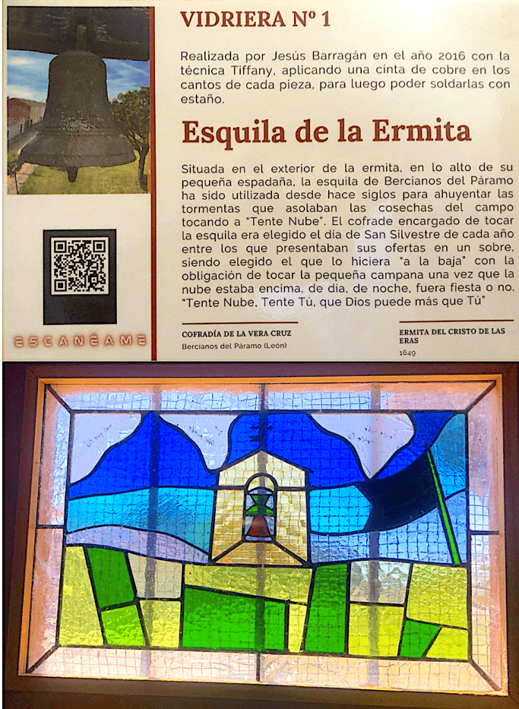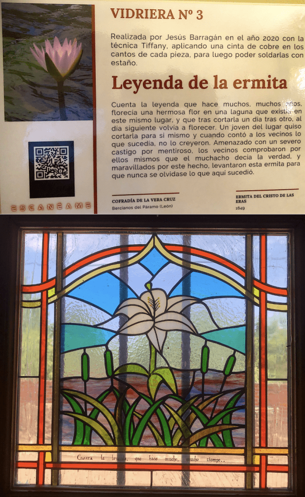 VIDRIERA Nº 3.Esta vidriera representa la leyenda de la ermita de Bercianos del Páramo, cuyo audio podrás escuchar en este enlace.https://podcasts.apple.com/gr/podcast/leyenda-de-la-ermita-del-cristo-de-las-eras/id1530856334?i=1000491010457