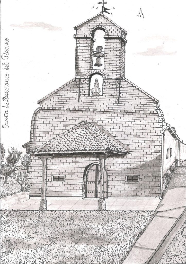 Nuestra ermita dibujada con pluma y tinta china por el artista Paramés «Macias». Muchas gracias por el regalo