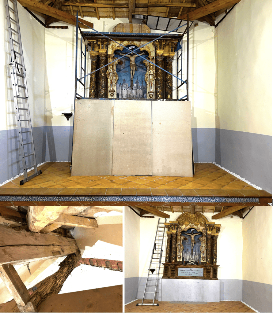 COMIENZO DEL TRATAMIENTO DE LA ARMADURA DEL TEJADO DE LA ERMITA QUE SOPORTARÁ NUESTRAS TEJAS GRABADAS