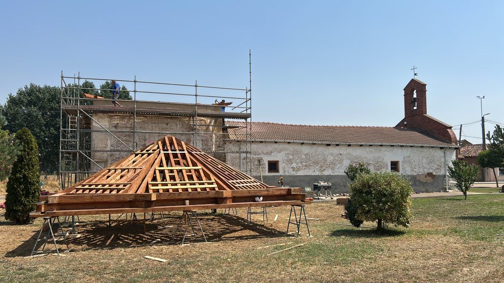 EL TEJADO DE LA ERMITA DE BERCIANOS DEL PÁRAMO, A PUNTO DE HACERSE REALIDAD.