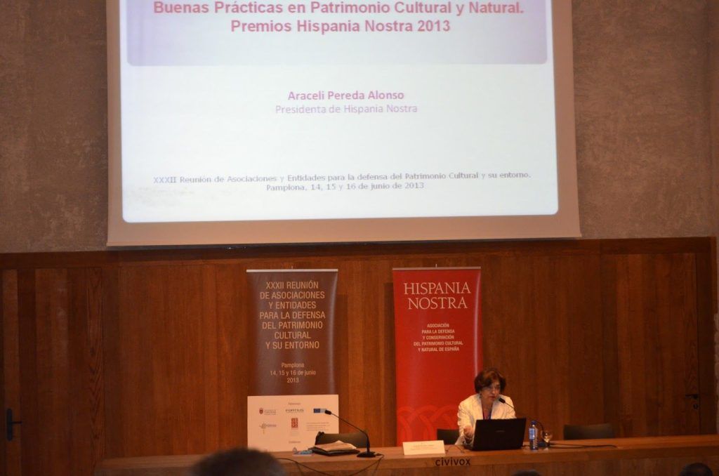 Los días 14, 15 y 16 de junio de 2013 Hispania Nostra organizó en Pamplona la XXXII Reunión de Asociaciones que convoca anualmente desde 1978 y a las que se invita a todas las asociaciones y entidades implicadas en la defensa del Patrimonio de España. Esta Reunión de Pamplona tuvo como temas de referencia la participación social y las buenas prácticas en el Patrimonio Cultural. Más de cuarenta asociaciones procedentes de distintos lugares de España, reunieron a unas cien personas en esta convocatoria. El lugar de celebración fue el salón de actos del Palacio del Condestable, construido entre 1550 y 1560 por Luis de Beaumont, IV Conde de Lerín y Condestable de Navarra, que ha sido convertido por el ayuntamiento pamplonés en centro de cultura tras una compleja recuperación y restauración que terminó a finales de 2008. Allí, las personas responsables del centro nos atendieron con toda amabilidad y eficacia.