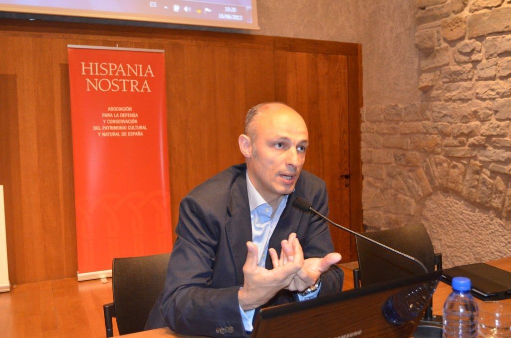 D. Santiago Palomero, Director del Museo Sefardí de Toledo, durante su ponencia La sesión de la tarde se inició con la ponencia presentada por D. Santiago Palomero, Director del Museo Sefardí de Toledo y vocal de la junta directiva de Hispania Nostra, que versó sobre la importancia de la sociedad civil en la defensa del Patrimonio y la felicidad.