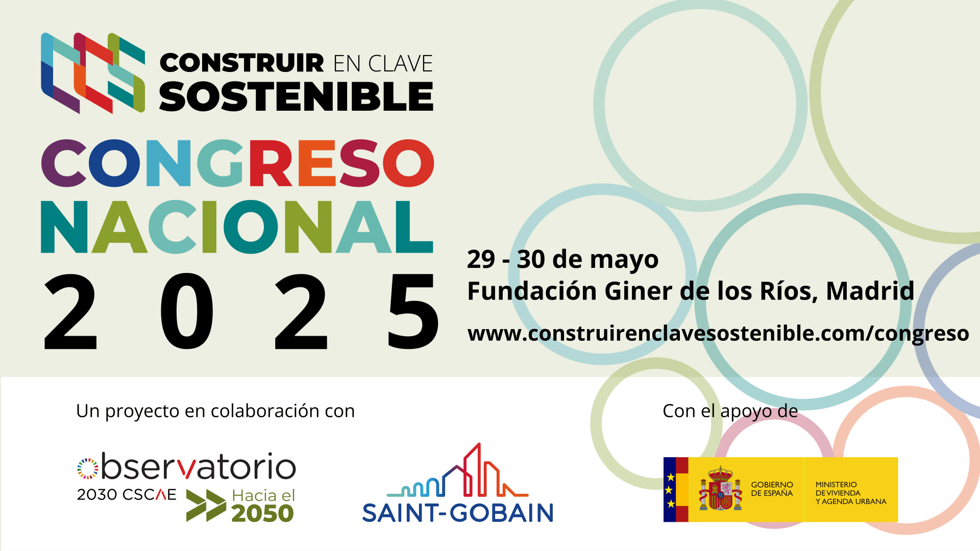 Los días 29 y 30 de mayo, se celebrará en la Fundación Giner de los Ríos (Madrid) el I Congreso Nacional ‘Construir en Clave Sostenible’. Un evento organizado por el Observatorio 2030 del CSCAE, con la colaboración de Saint-Gobain y el Ministerio de Vivienda y Agenda Urbana (MIVAU).