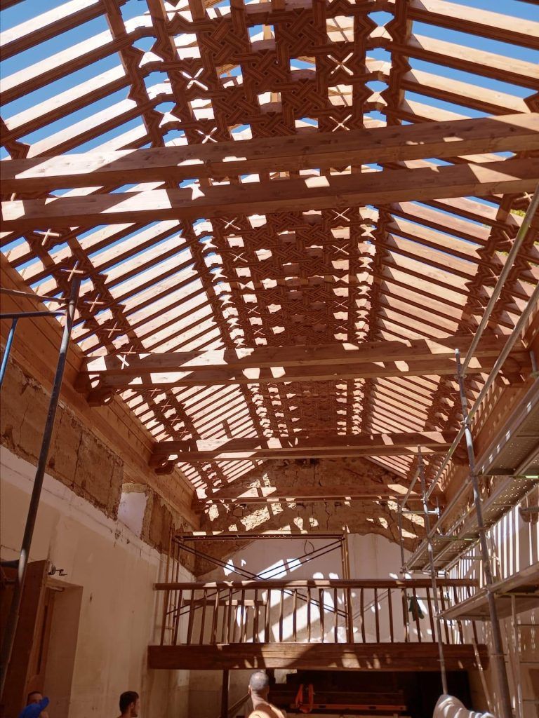 El Centro de Oficios y Artes Plásticas de León comienza el curso de verano en el que se construirá una armadura del presbiterio para el templo y proceder después a la instalación de las tejas apadrinadas. https://www.lanuevacronica.com/actualidad/tejado-ermita-bercianos-paramo-cada-dia-mas-cerca-ser-realidad_178338_102.html?fbclid=IwY2xjawLTLiFleHRuA2FlbQIxMQBicmlkETBqZGE1WkdDS1VYUERTRFdwAR6M7zCIZ0k38cgV4xJSQ_YRKxxq8p9IfxOEu2Fz5vEyuZU02GSfxBuAJogR7Q_aem_ICYbpOEjFdIPOiCryY7o_Q La ermita del Cristo de las Eras de Bercianos del Páramo ve cada día más cerca la restauración y renovación de su tejado. Tras lograr el primer objetivo de recaudar los fondos necesarios a través de la campaña de micromecenazgo de apadrinamiento de tejas, con la que logró un total 25.281 euros, la Asociación Cultural Cofradía de la Vera Cruz puso en marcha otro proyecto para acometer una restauración «más