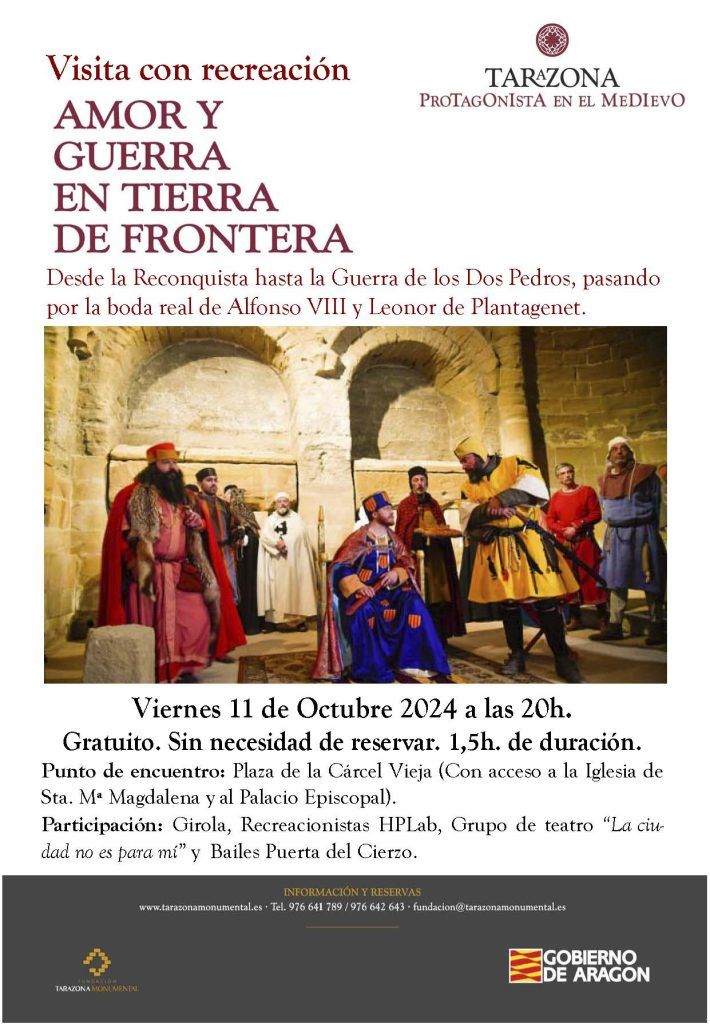 Tendrá lugar el 10 de octubre a las 20h. La duración de la visita será aproximadamente de 1,5 horas. En ella se visitará parte del casco antiguo y se accederá a la Iglesia de Sta. Mª Magdalena y Palacio Episcopal. Tratará sobre hechos históricos acontecidos en Tarazona durante el Medievo de gran relevancia para la historia de Aragón: como como la Reconquista, la Guerra de los Dos Pedros o la boda de Leonor de Plantagenet y Alfonso VIII. PVP 5 euros. Plazas limitadas. Compra o reserva anticipada: Recepción turística de la Catedral de Tarazona, catedral@tarazonamonumental.es y Tel. 976642643 – 976641789 Contamos con la colaboración del Gobierno de Aragón,